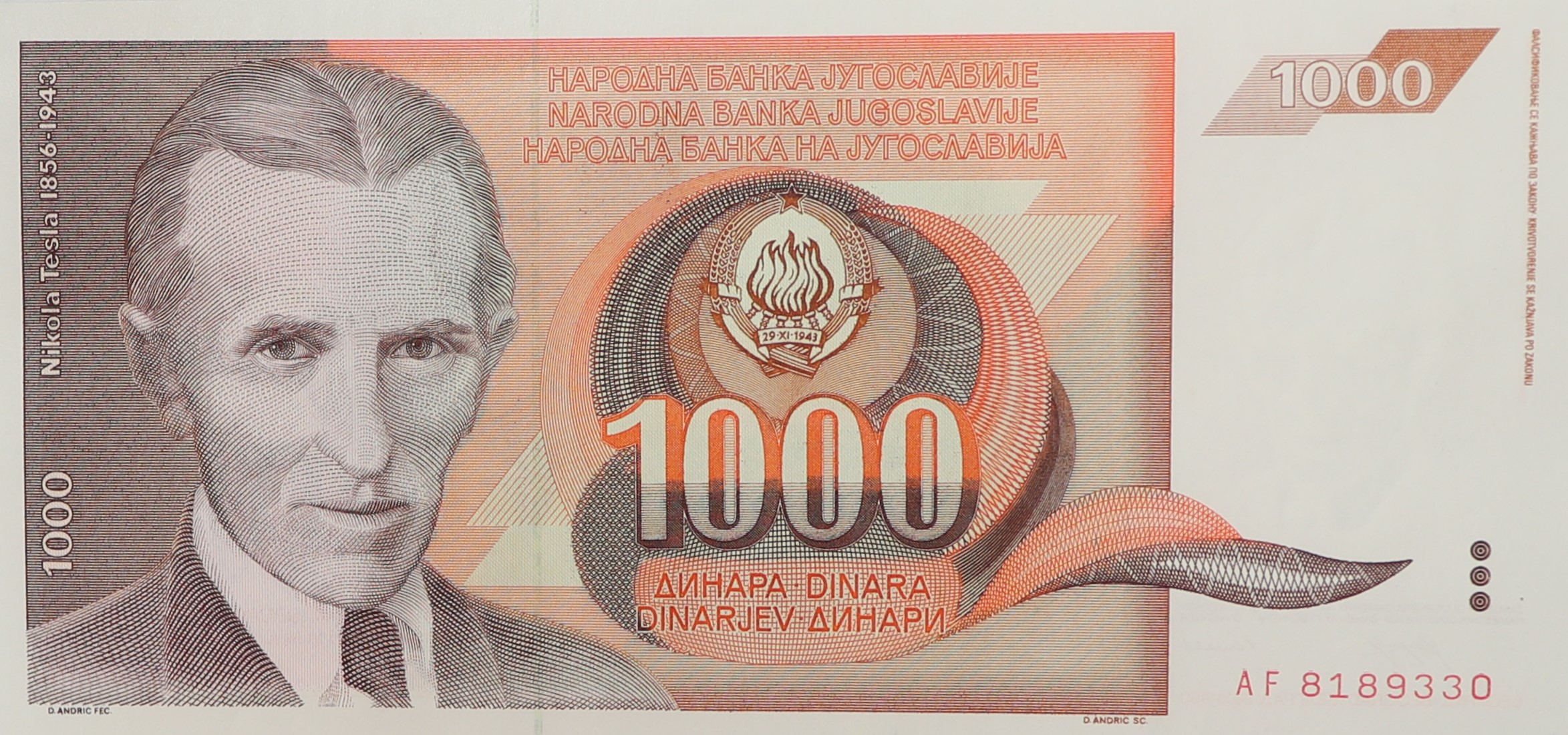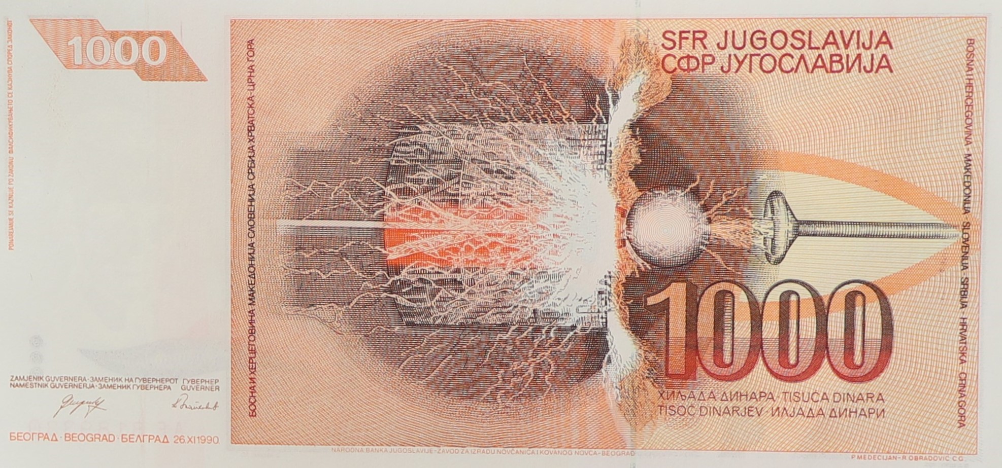 1 000 Dinarów bez pieczęci banknowej - Bośnia i Hercegowina - 1990 rok - Stan UNC