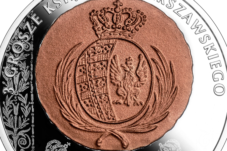 Moneta kolekcjonerska 20 zł Historia monety polskiej - 3 grosze Księstwa Warszawskiego.