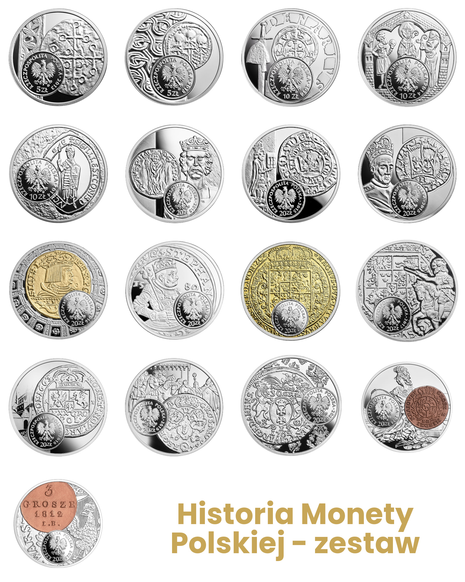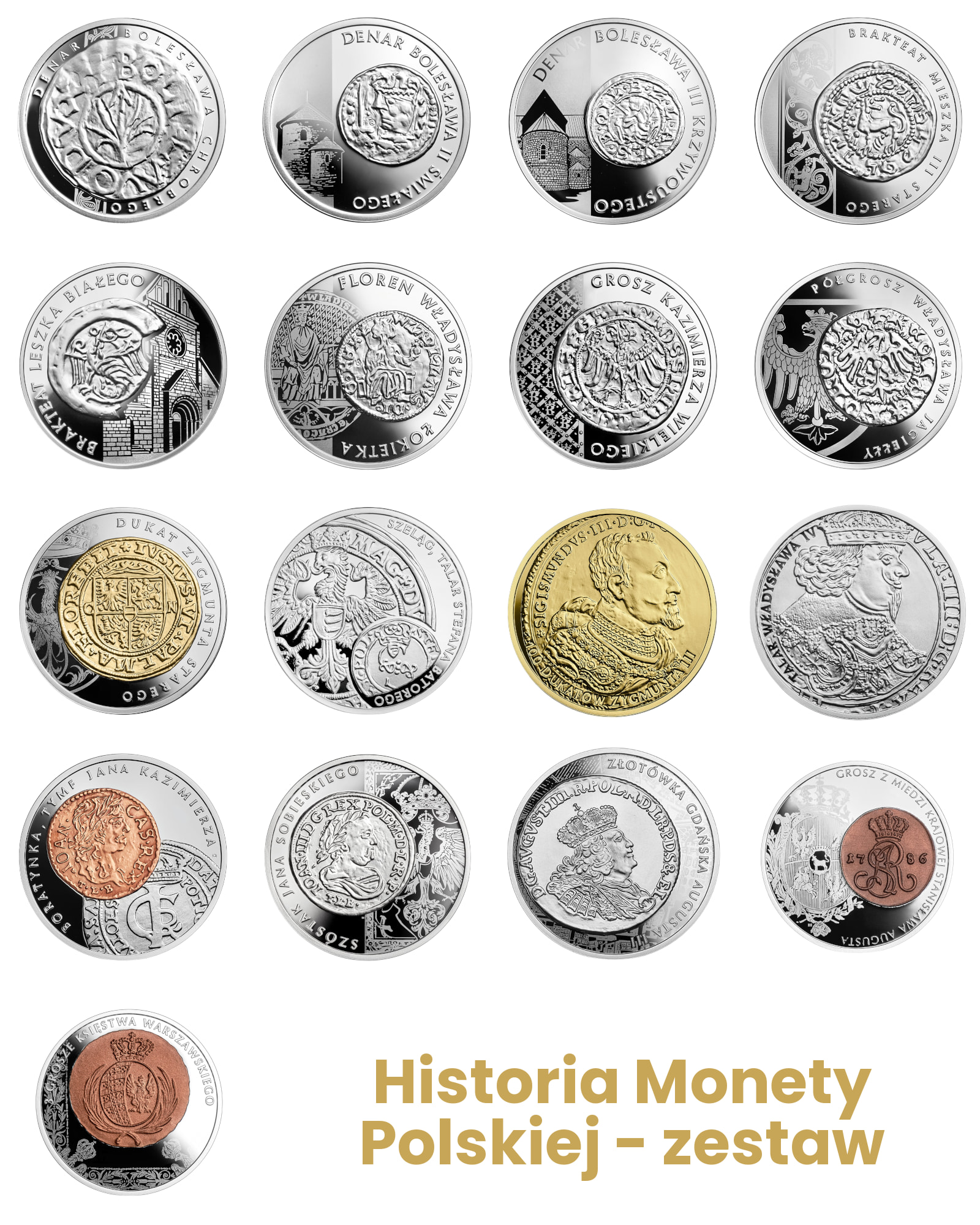 Komplet 17 monet z serii - Historia monety Polskiej