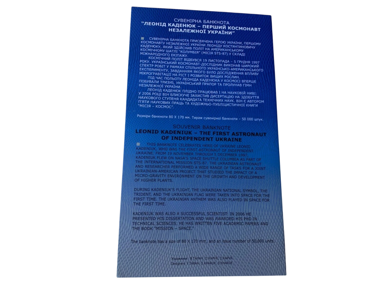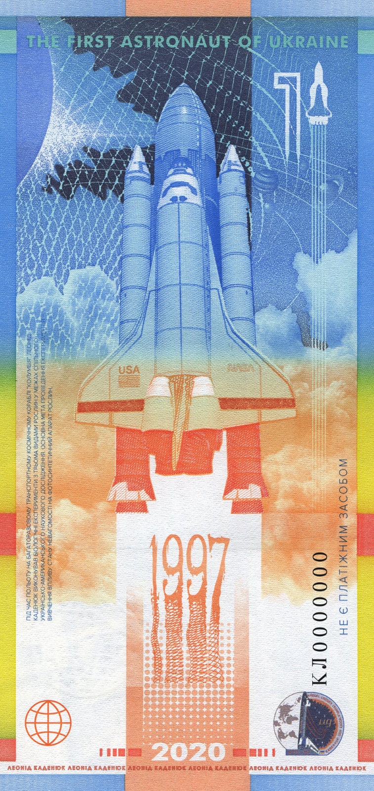 Banknot pamiątkowy "Leonid Kadenyuk - pierwszy kosmonauta niepodległej Ukrainy"